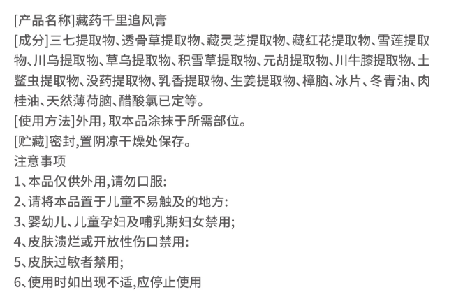 【產(chǎn)品名稱】:藏藥千里追風(fēng)膏