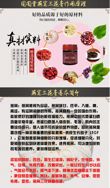 【產(chǎn)品名稱】:固元堂燕窩三花膏