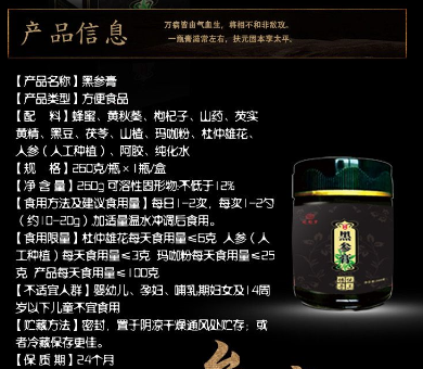 【產(chǎn)品名稱】:固元堂黑參膏
