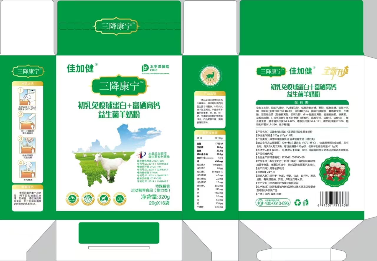 【產(chǎn)品名稱】:佳加健初乳免疫球蛋白+富硒高鈣益生菌羊奶粉