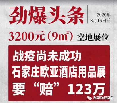 初春時(shí)期,歐亞酒店用品展組委會(huì)高層就傳出了一個(gè)讓人震驚的消息:“石家莊歐亞酒店用品展要“砸”123萬(wàn)直補(bǔ)展會(huì)”。消息一出,展商紛紛圍觀,大家一致認(rèn)為企業(yè)此刻正是面臨復(fù)工難的時(shí)候,歐亞挺身而出,可見實(shí)力與誠(chéng)意。還有企業(yè)問(wèn)道:“賠這么多錢,都賠到哪里了?”。今天我們就來(lái)深度解讀。