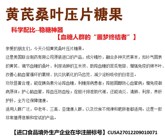 【產(chǎn)品名稱】:黃芪桑葉壓片糖果 進口產(chǎn)品